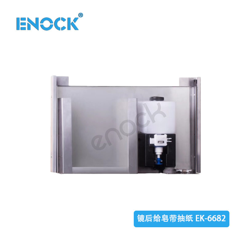 ENOCK 模块化镜后系统,可通过高速干手器、感应给皂器、不锈钢抽纸架、感应水龙头等多种模块自由组合,形成一体化整体镜柜系统。免接触式设计,有效降低交叉感染风险;暗藏式壁挂安装,让台面更简洁卫生,减少卫生死角,便于日常打理。